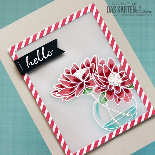 The teachers in class did an amzing job inspiring me and I really wanted to white amboss a flower on vellum and color it from the backside - this is so pretty! I've done this before, but it's long ago and I'm happy I found this technique again.